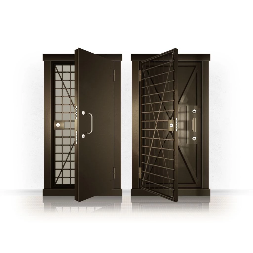 Металлические двери КХО и КХН представляют собой входные блоки, обладающие высоким уровнем взломостойкости и состоят из трех основных элементов: усиленного каркаса, сплошного металлического полотна и решетчатой двери. Дверной блок изготавливается из стального уголка 100*100 мм. Места крепления блока к стене цементируются и закрываются стальными наличниками шириной 40 мм. Крепеж заходит вглубь стены на 80 мм. В конструкции внешней створки монтируются ребра жесткости, для обшивки используется сталь толщиной не менее 3 мм. Внутренняя решетка изготавливается из прутка диаметром 16 мм. Размер ячеек решетки должен составлять не более 15 на 15 см. В точках пересечения прутья надежно приваривают друг к другу. В КХО и КХН необходимо поддерживать определенную температуру и влажность. Для этого внутреннее пространство глухой двери заполняется теплоизоляционным материалом, а по периметру двери приклеивается уплотнитель. Такие двери оборудуются замками с повышенным уровнем взломостойкости. Специализированные двери КХО и КХН в Суворове могут быть оснащены сигнализацией, в конструкции могут быть проушины для навесного замка и элементами для опечатывания. Если идет речь о двери в комнату хранения оружия, в створке оборудуется окно для выдачи оружия и спец. средств, которое накрывается стальной дверцей.